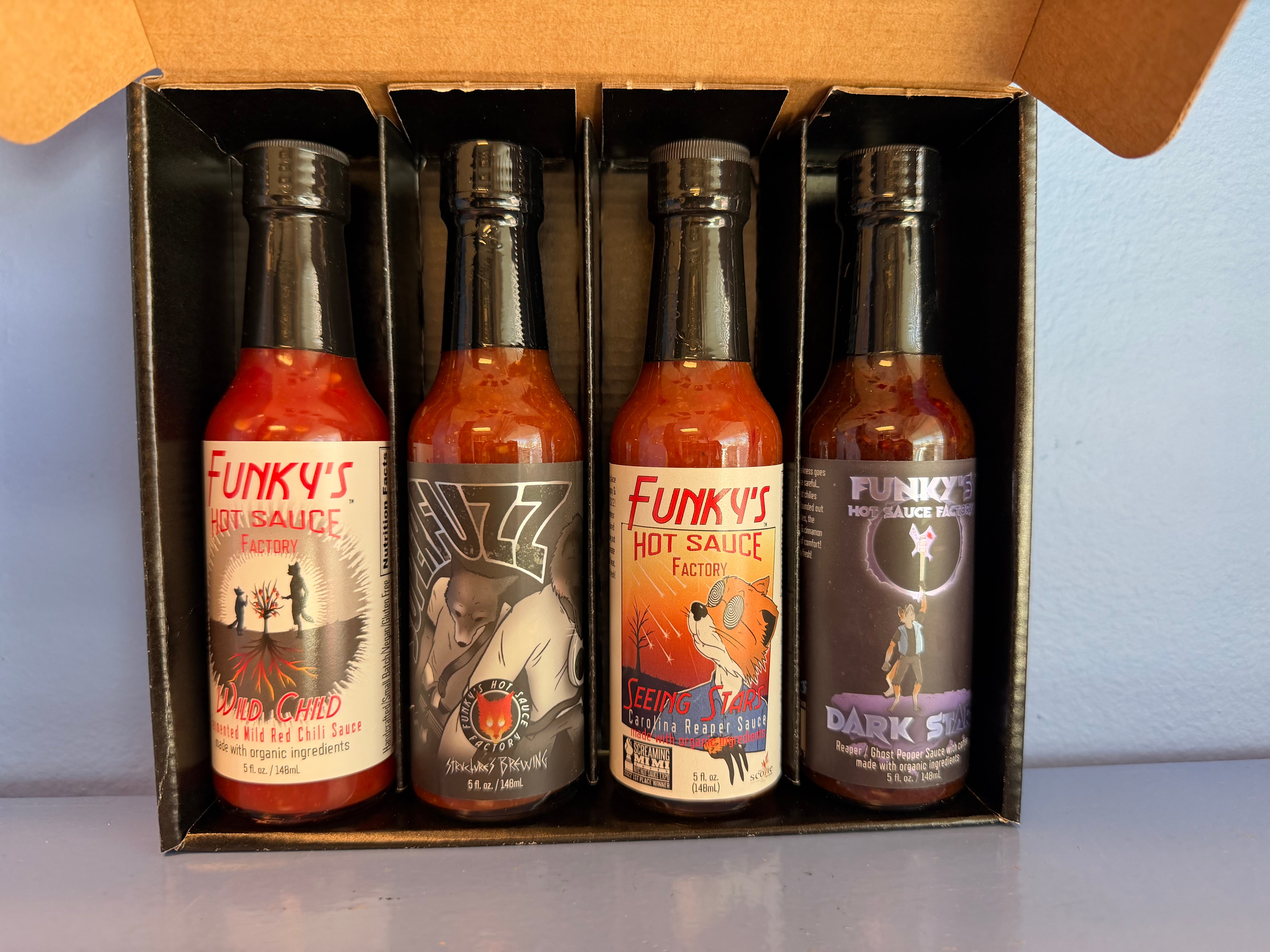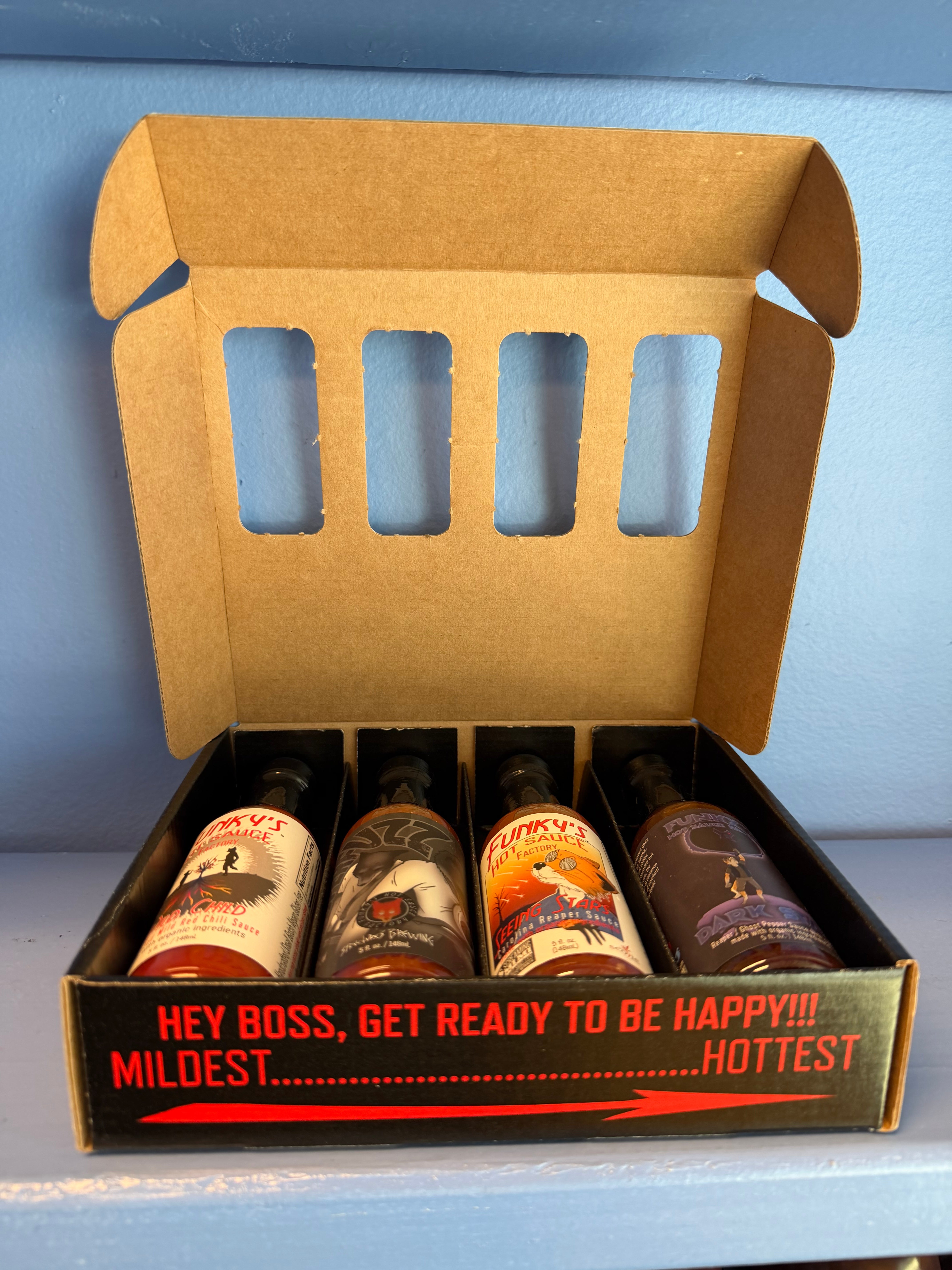 This sampler has got an ascending heat range with a little something for everyone’s comfort level and it can also be used as your own “Hot Ones” inspired tasting set! Includes gift box and “33 drops of hot sauce” tasting journal!