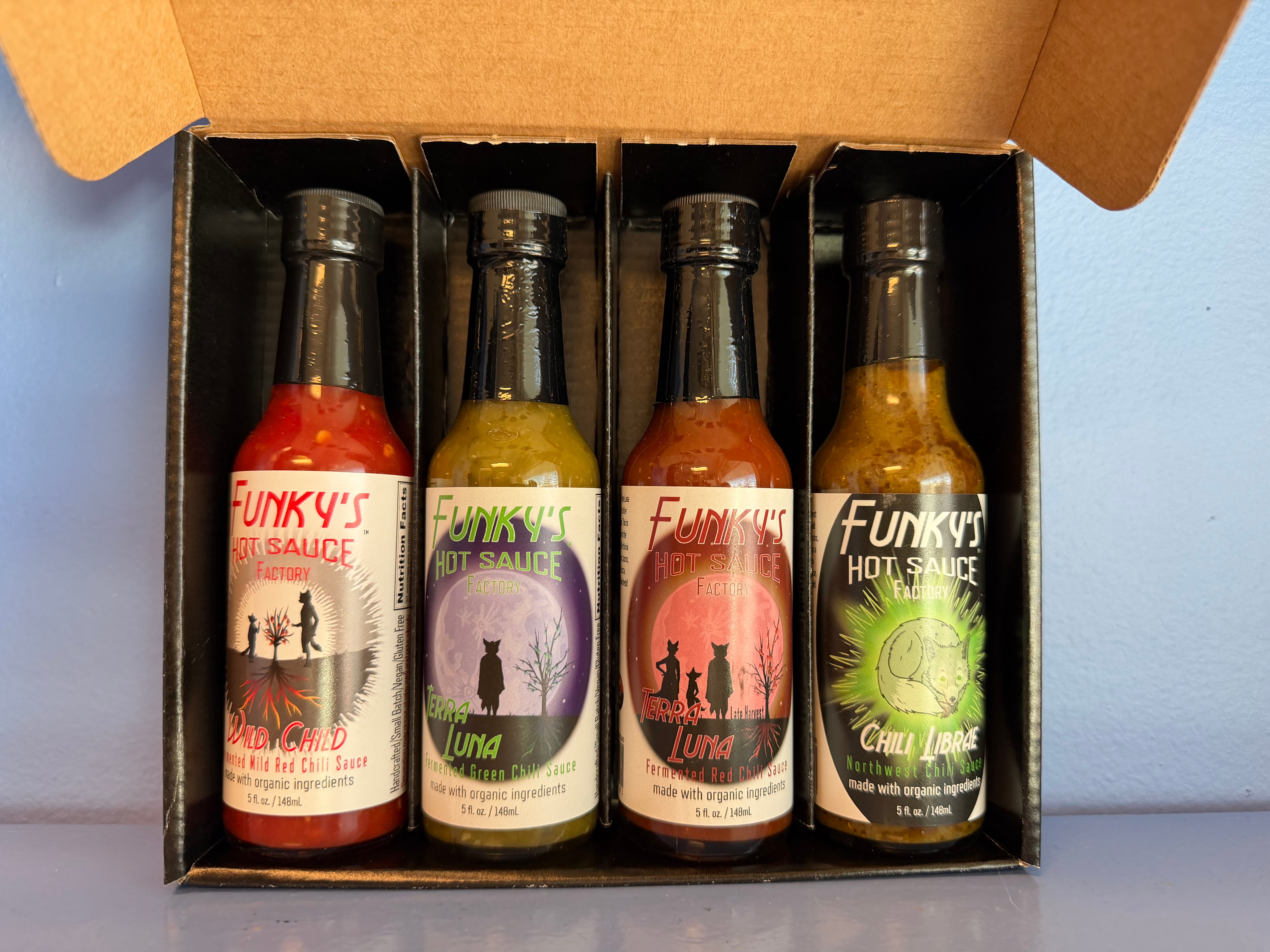 The colors of the season! Our mildest sauces all together and ready for a holiday gift!